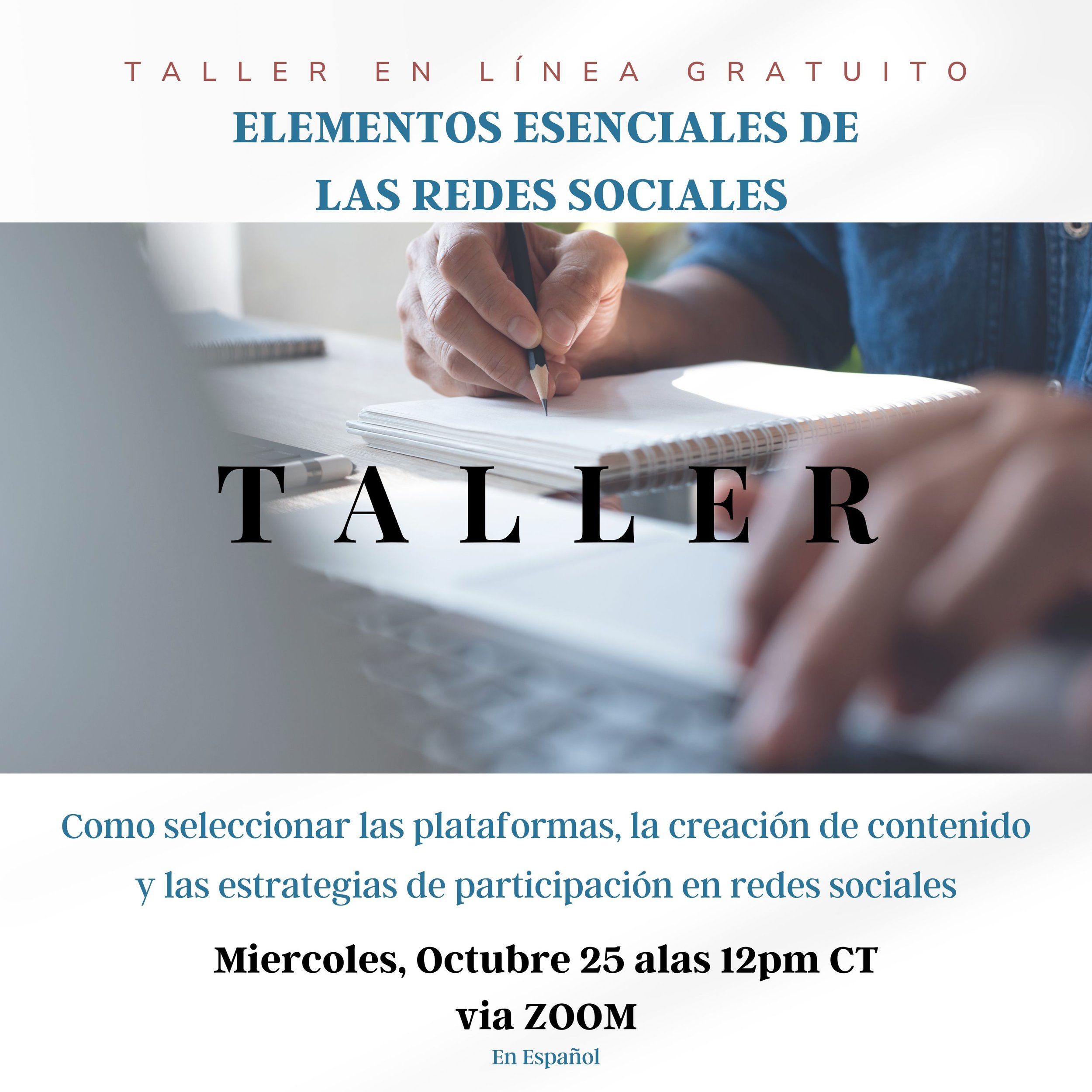 Este taller está diseñado exclusivamente para propietarios de pequeñas empresas y especialistas en marketing que buscan aprovechar el poder de las redes sociales con un presupuesto limitado. Nuestros conocimientos personalizados y estrategias prácticas le ayudarán a prosperar en el competitivo panorama digital. ¡Únase a nosotros y observe cómo prospera su pequeña empresa en las redes sociales!